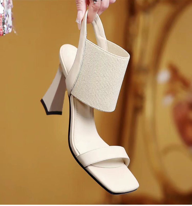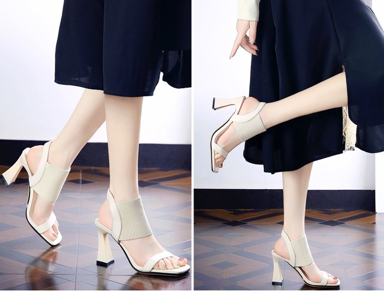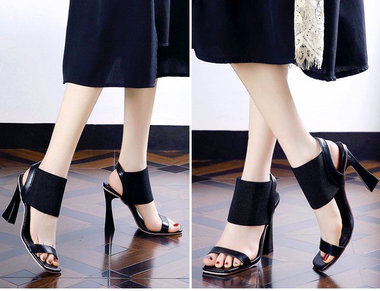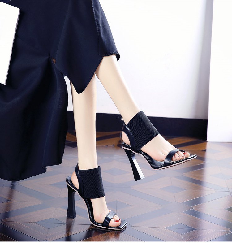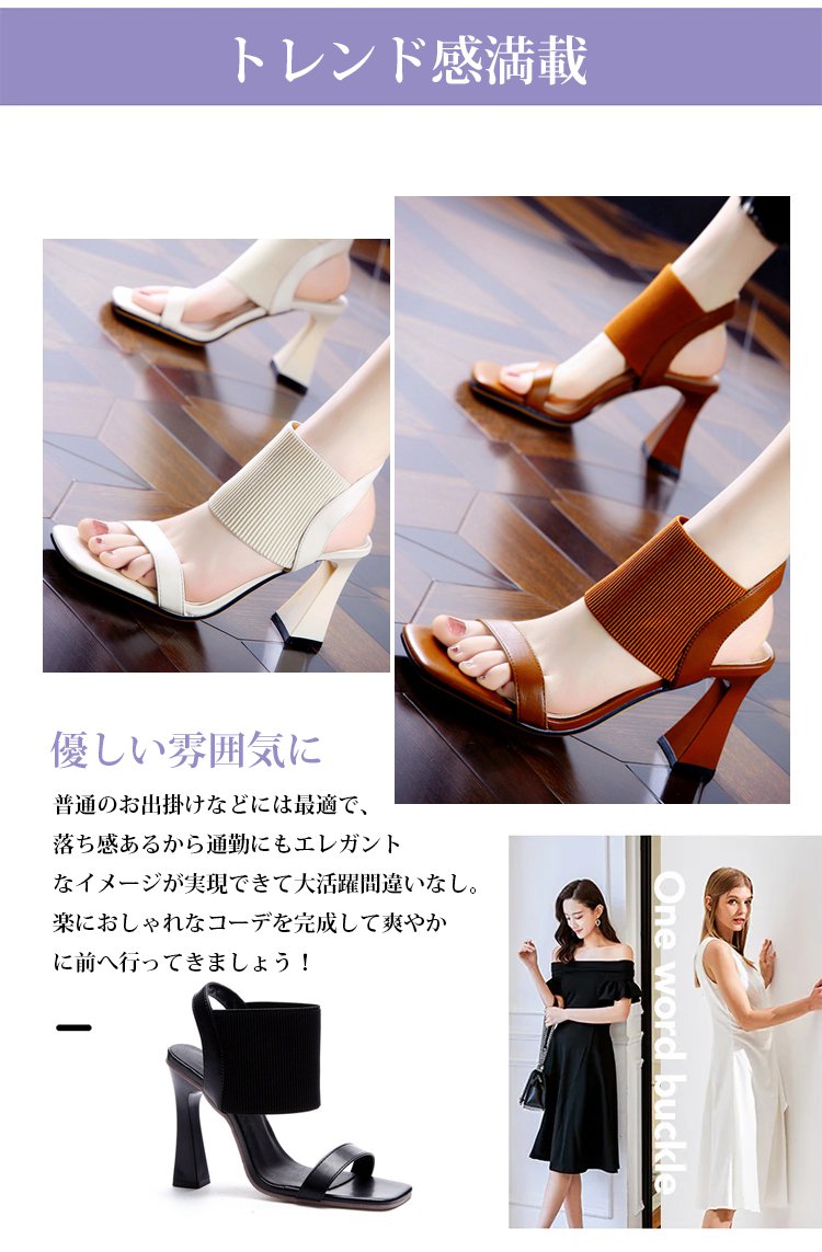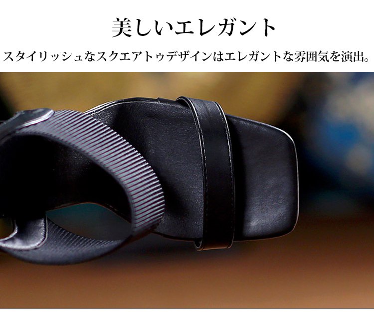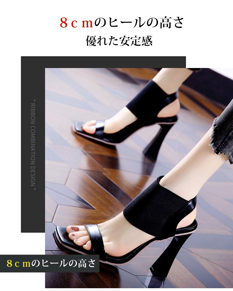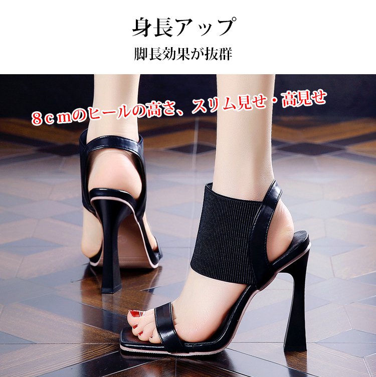 新作スクエアトゥハイヒールサンダル