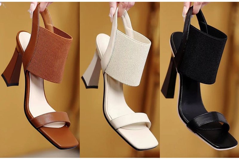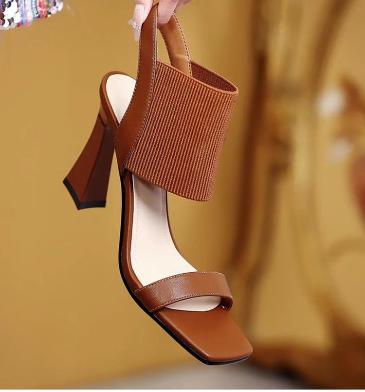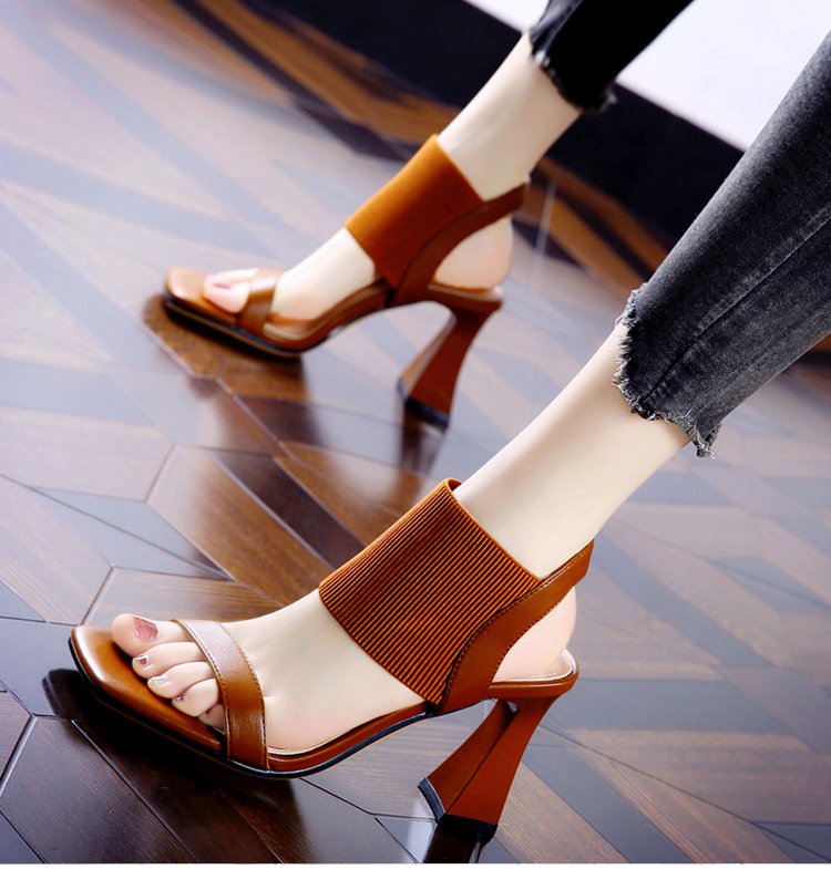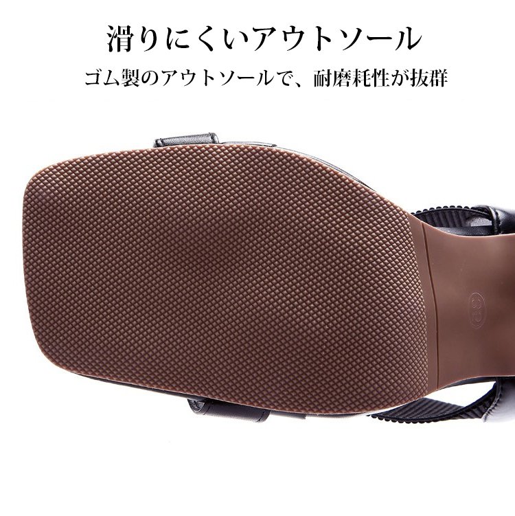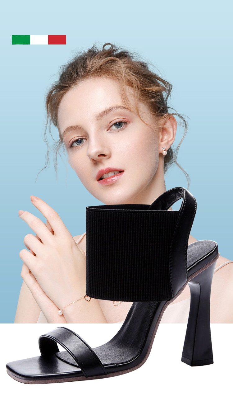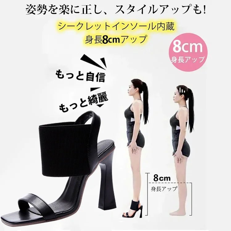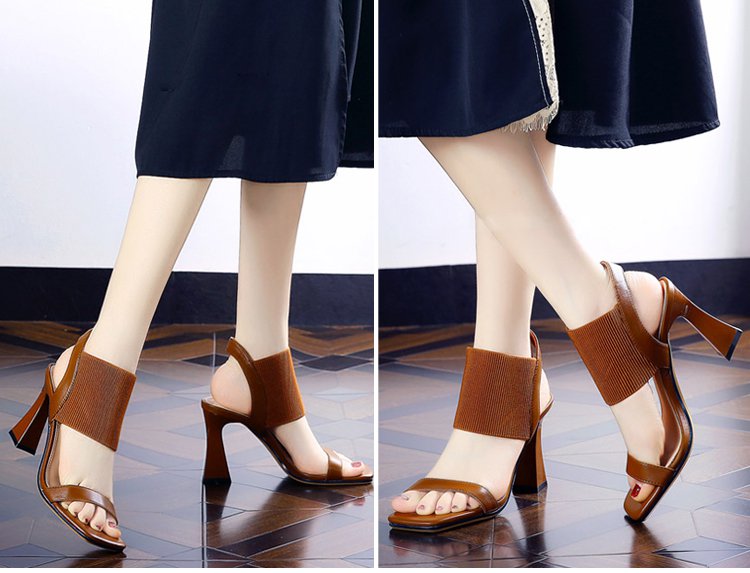 新作スクエアトゥハイヒールサンダル