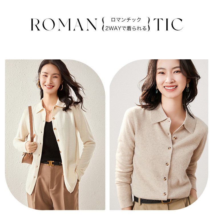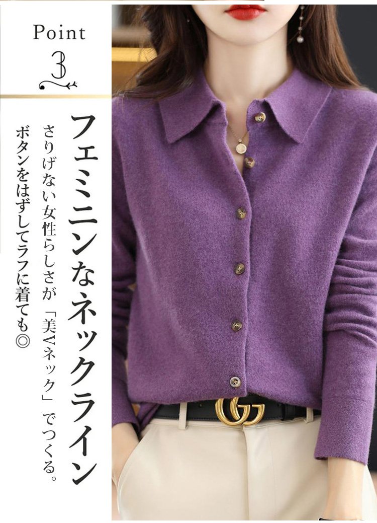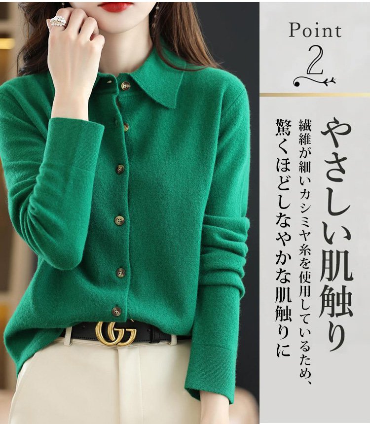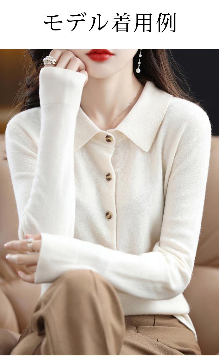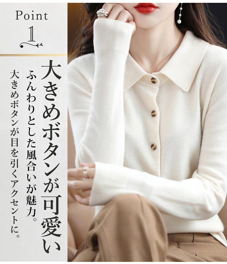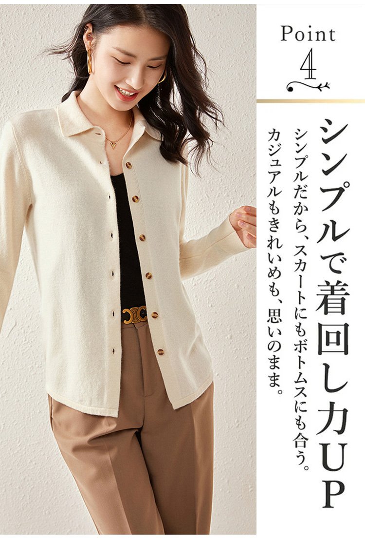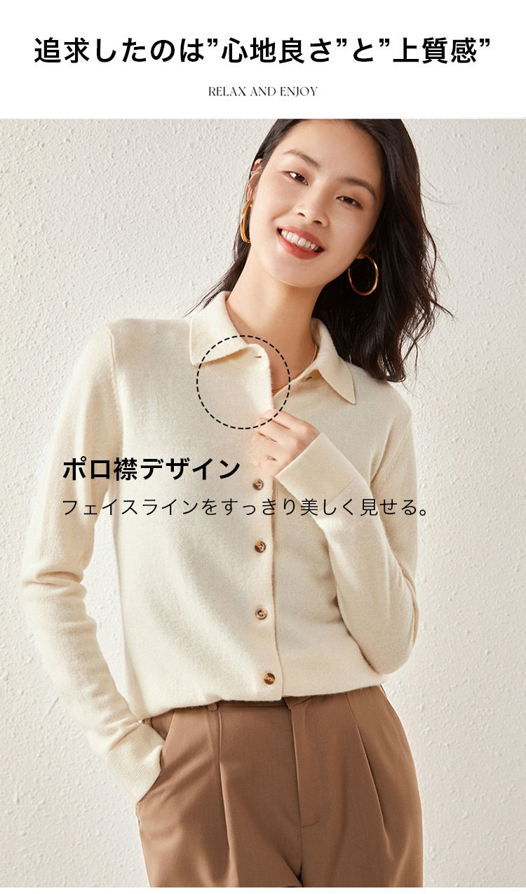 カシミヤニット-ポロ襟デザイン,フェイスラインをすっきり美しく見せる.着まわし力抜群