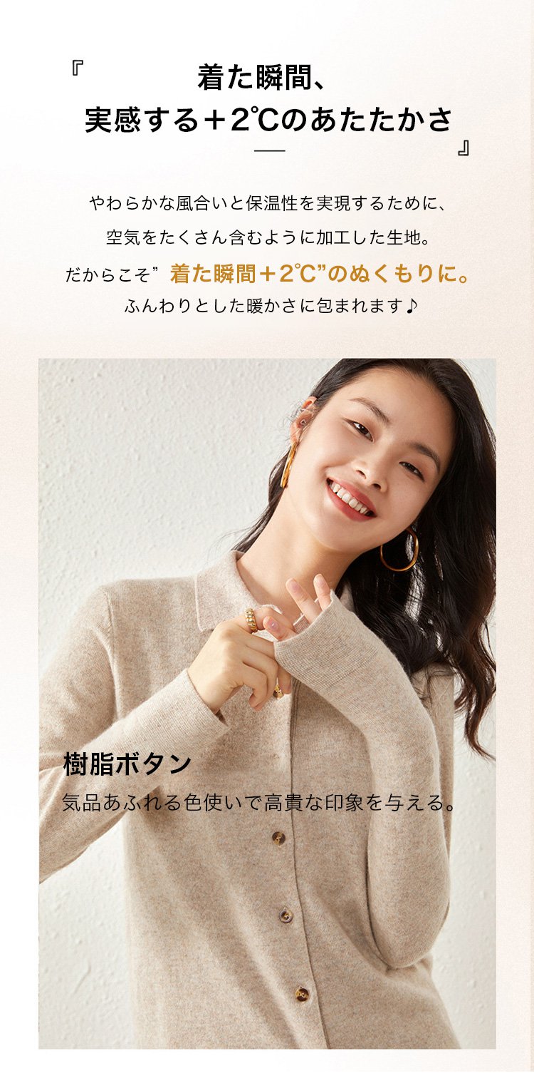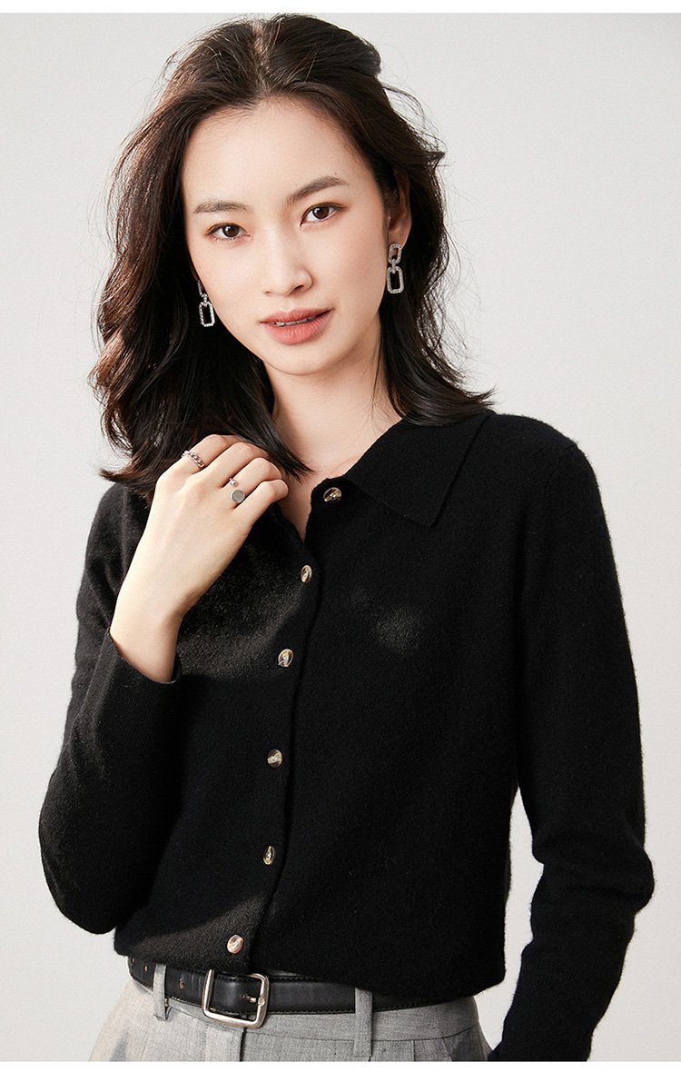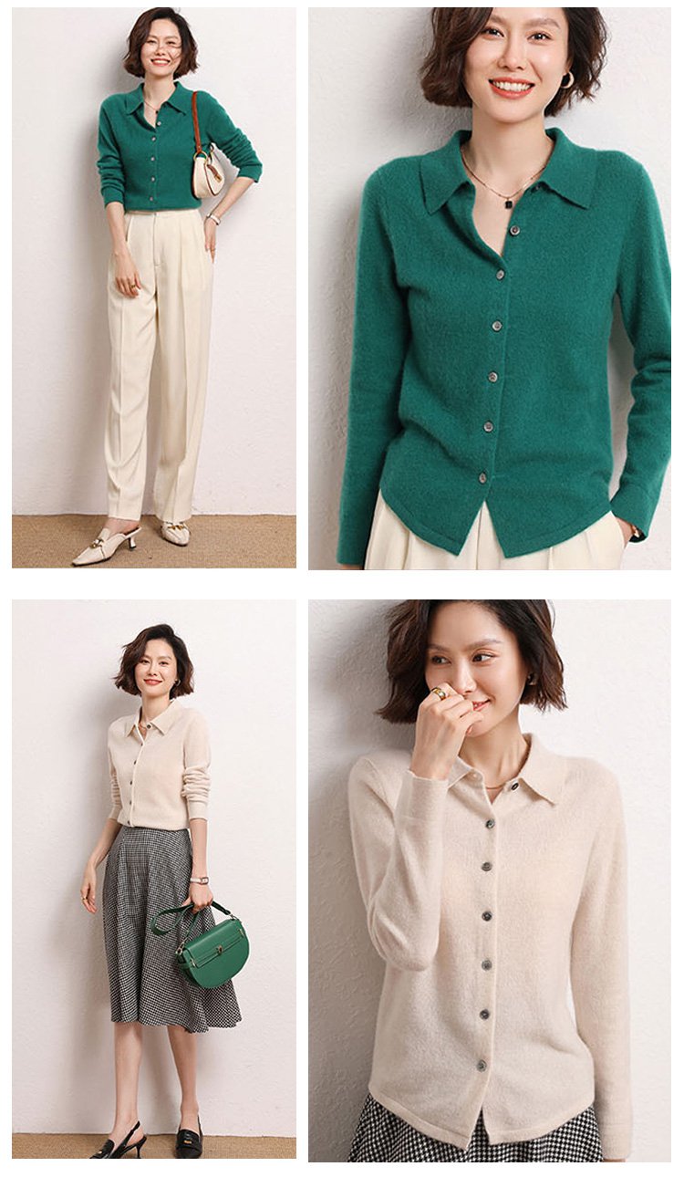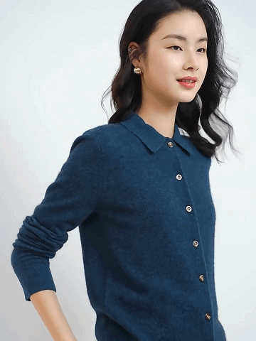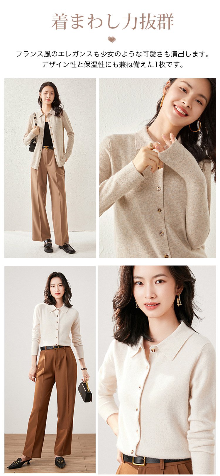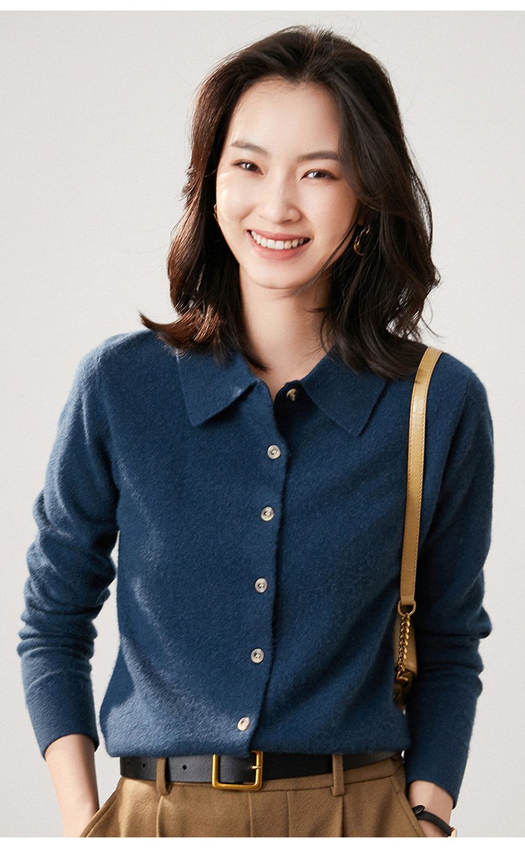 カシミヤニット-ポロ襟デザイン,フェイスラインをすっきり美しく見せる.着まわし力抜群