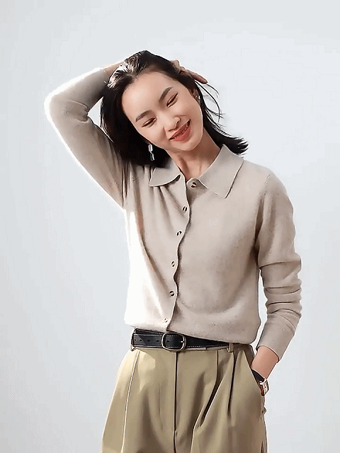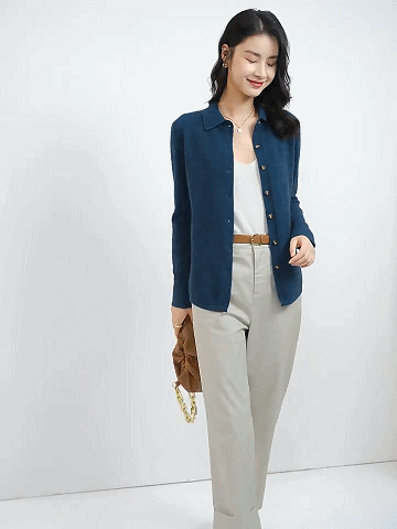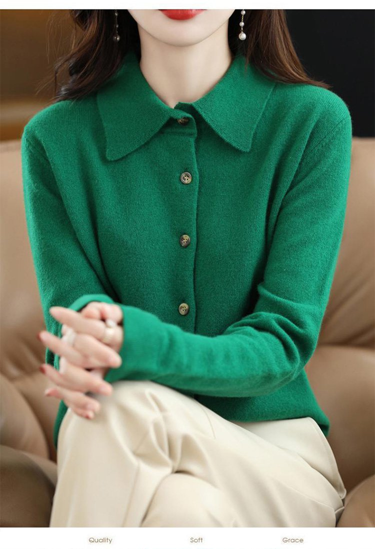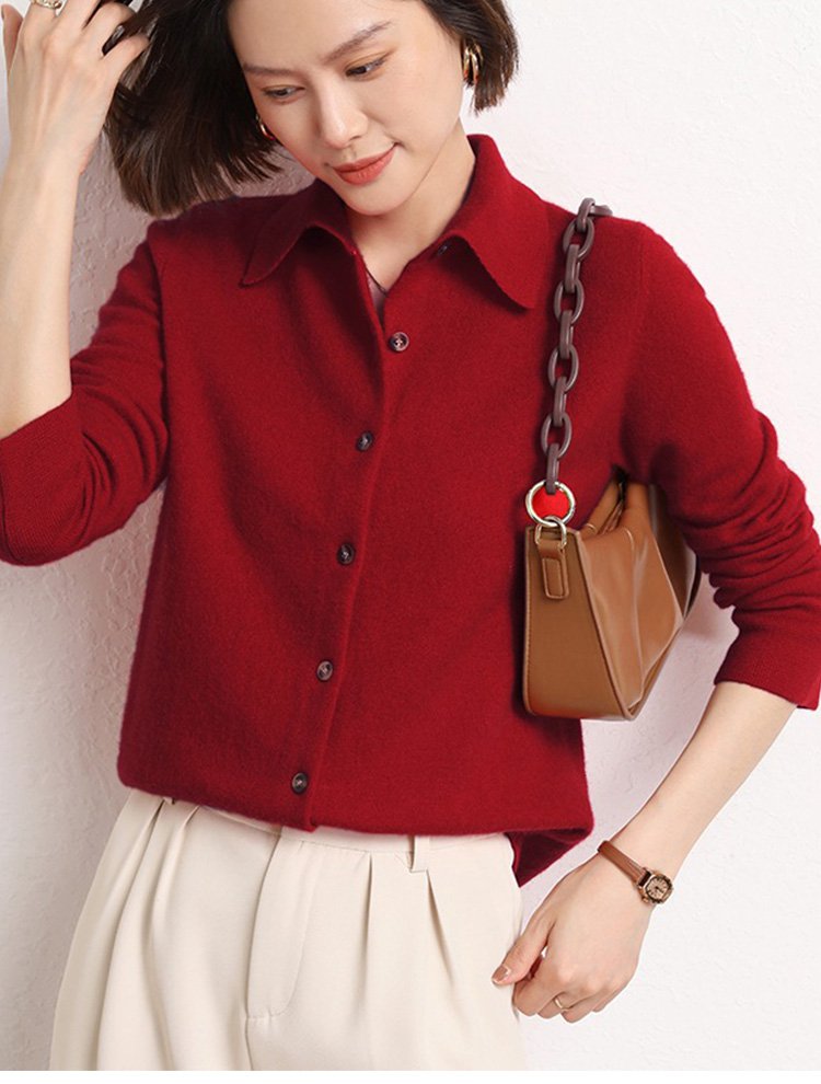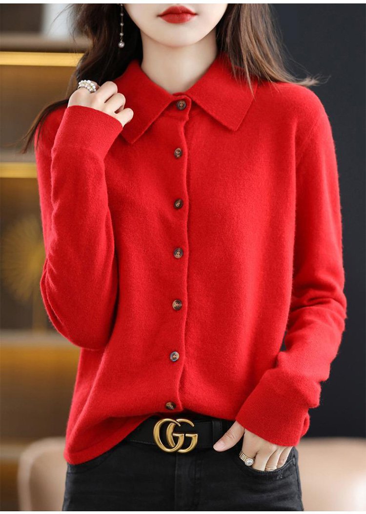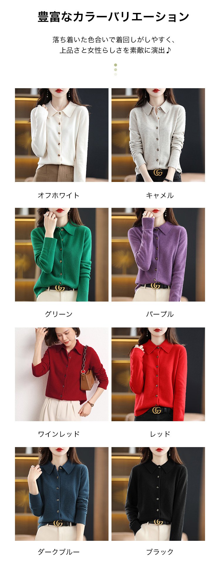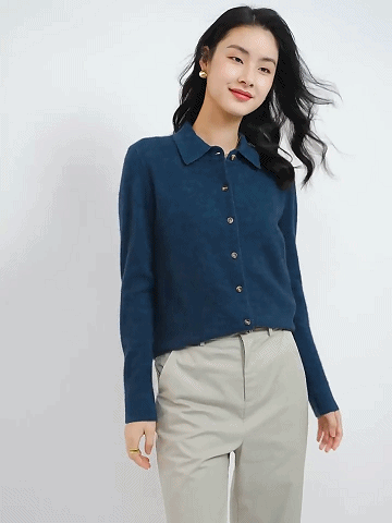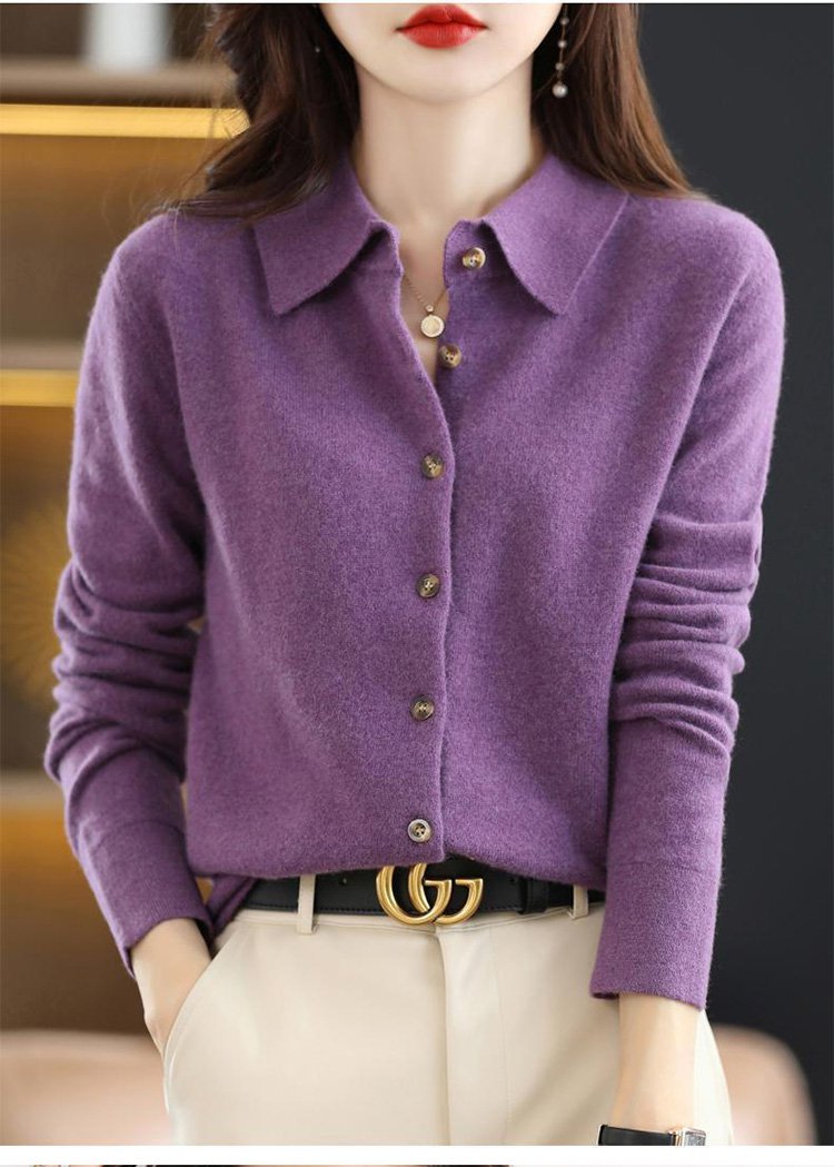 カシミヤニット-ポロ襟デザイン,フェイスラインをすっきり美しく見せる.着まわし力抜群
