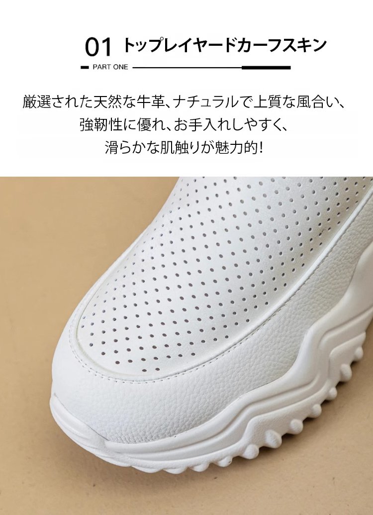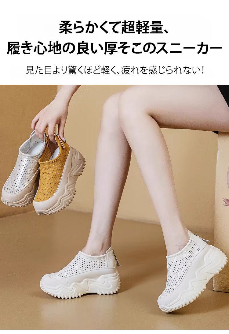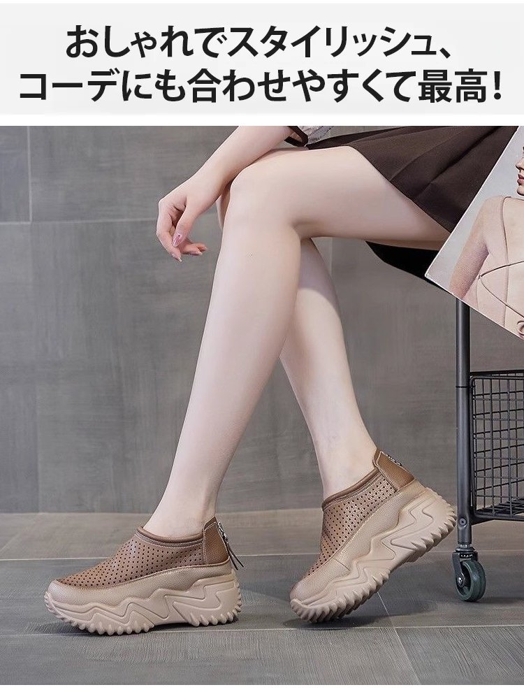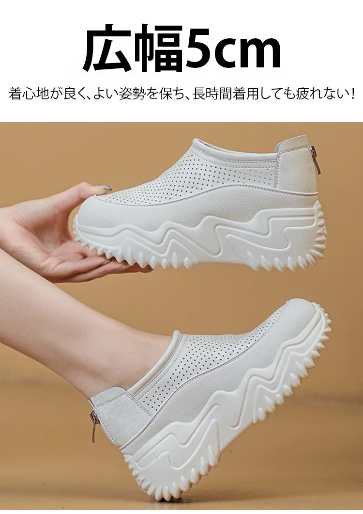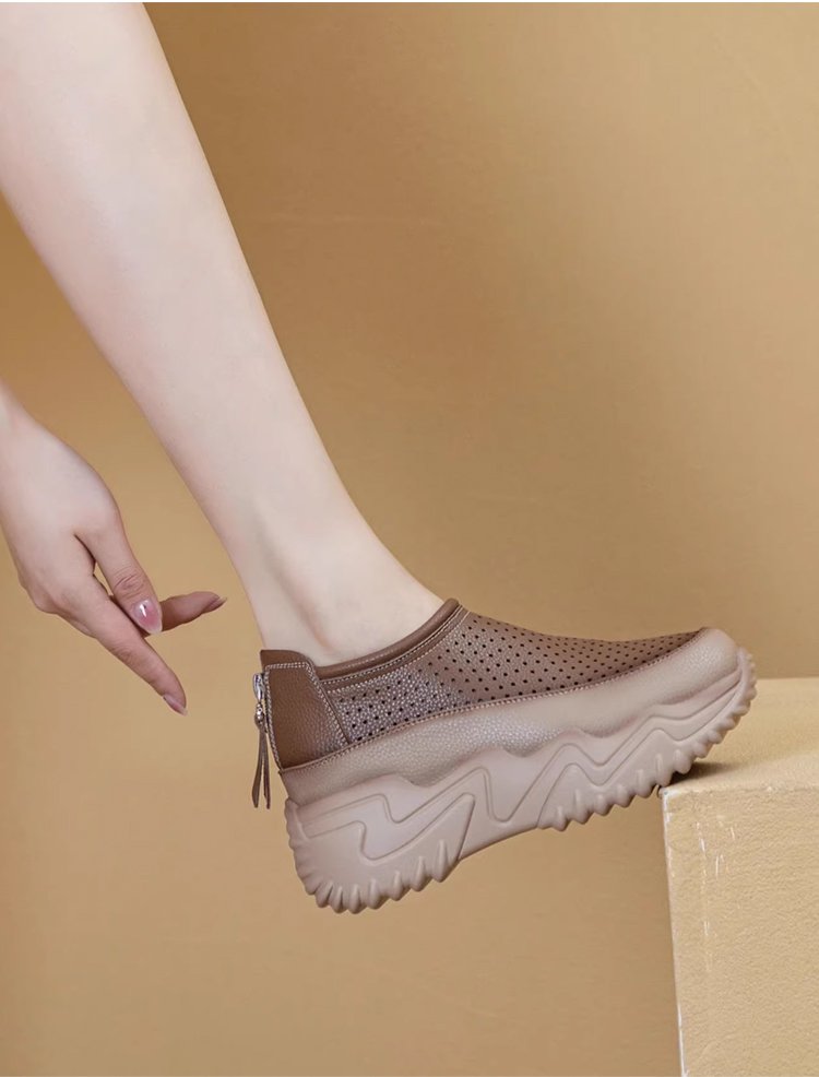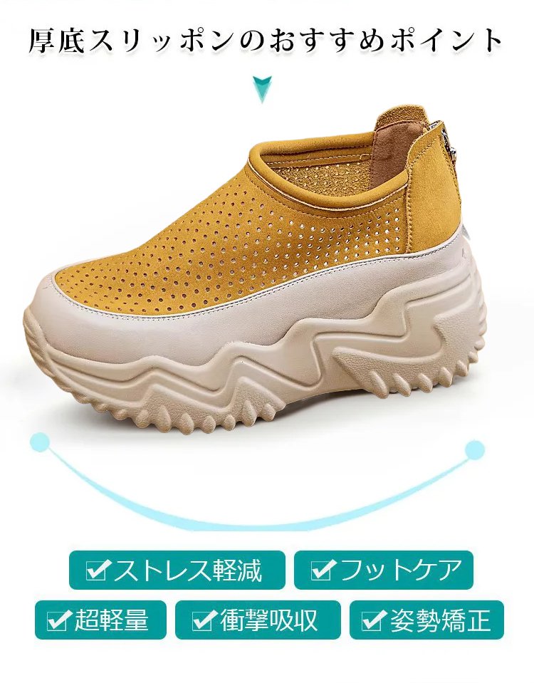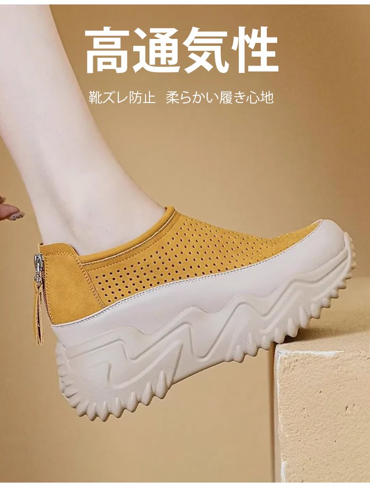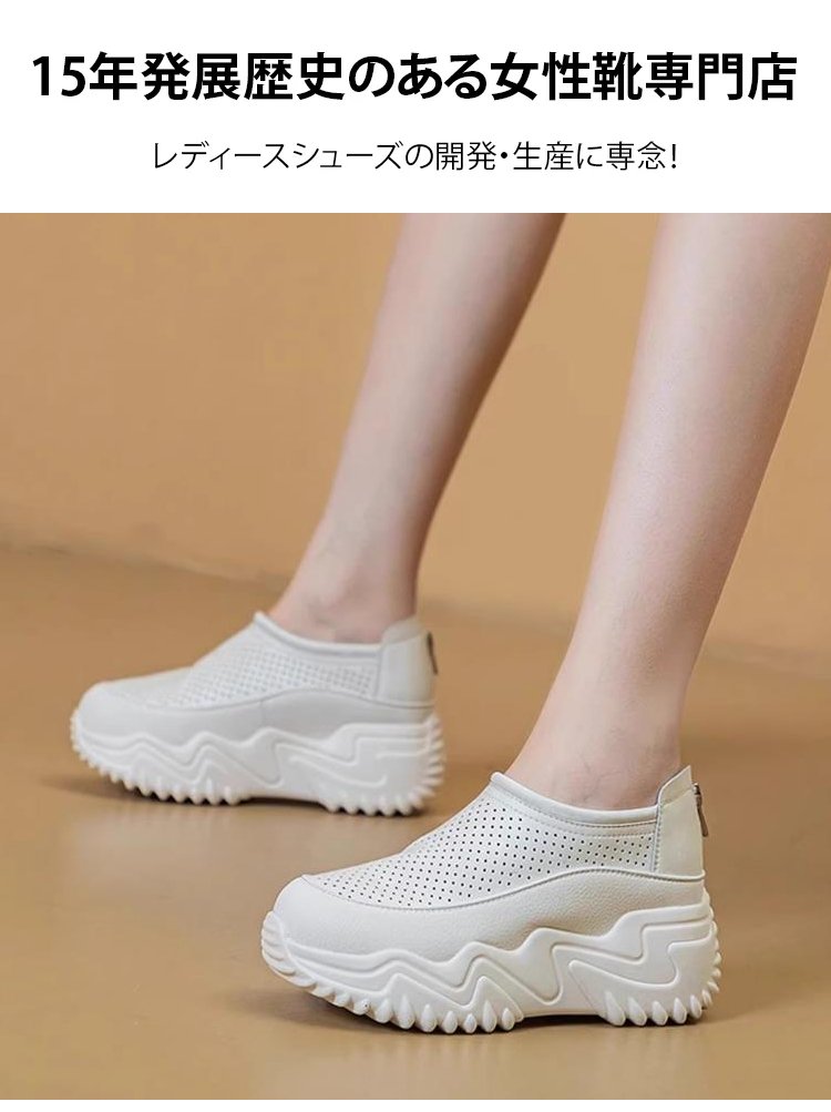 透かし彫りの厚底スリッポンレディース