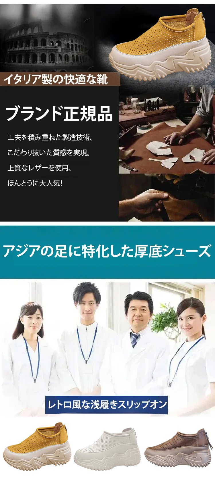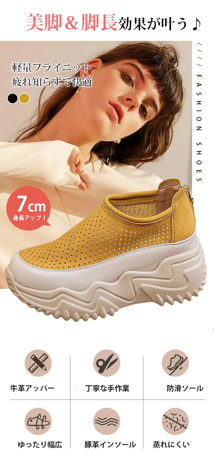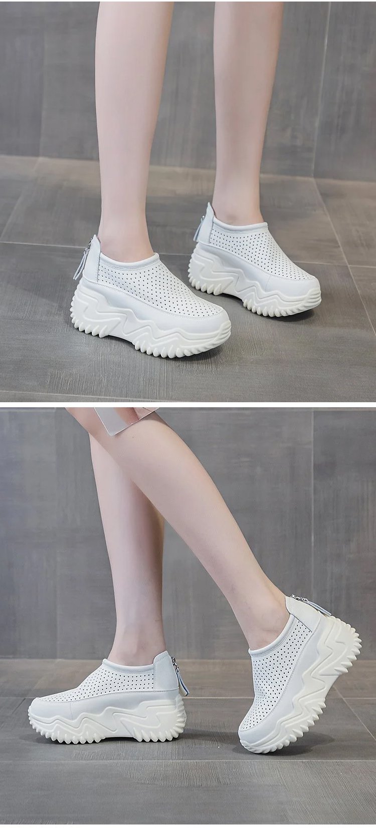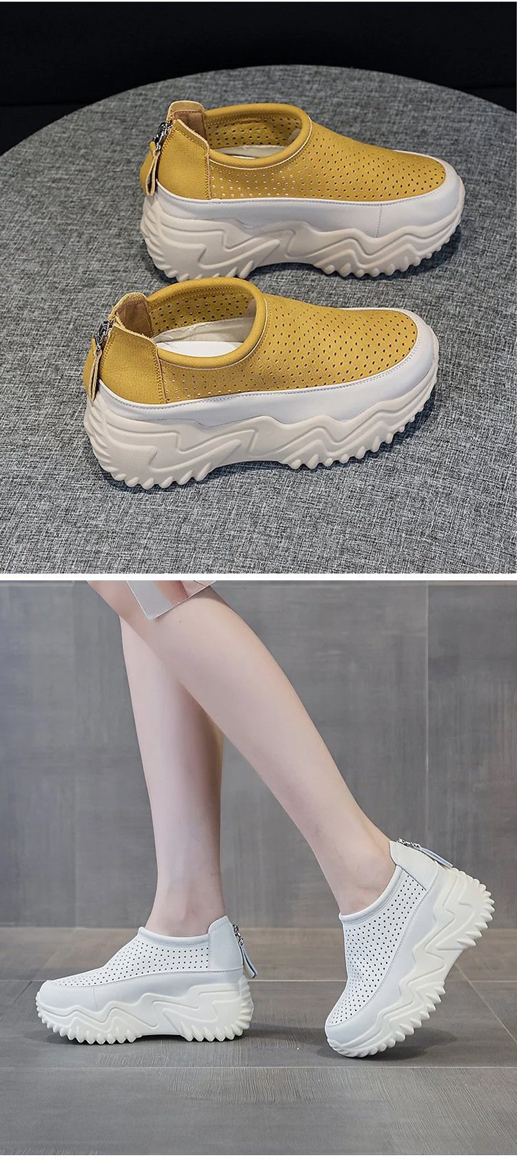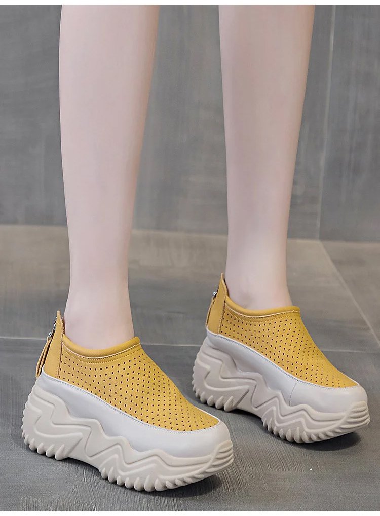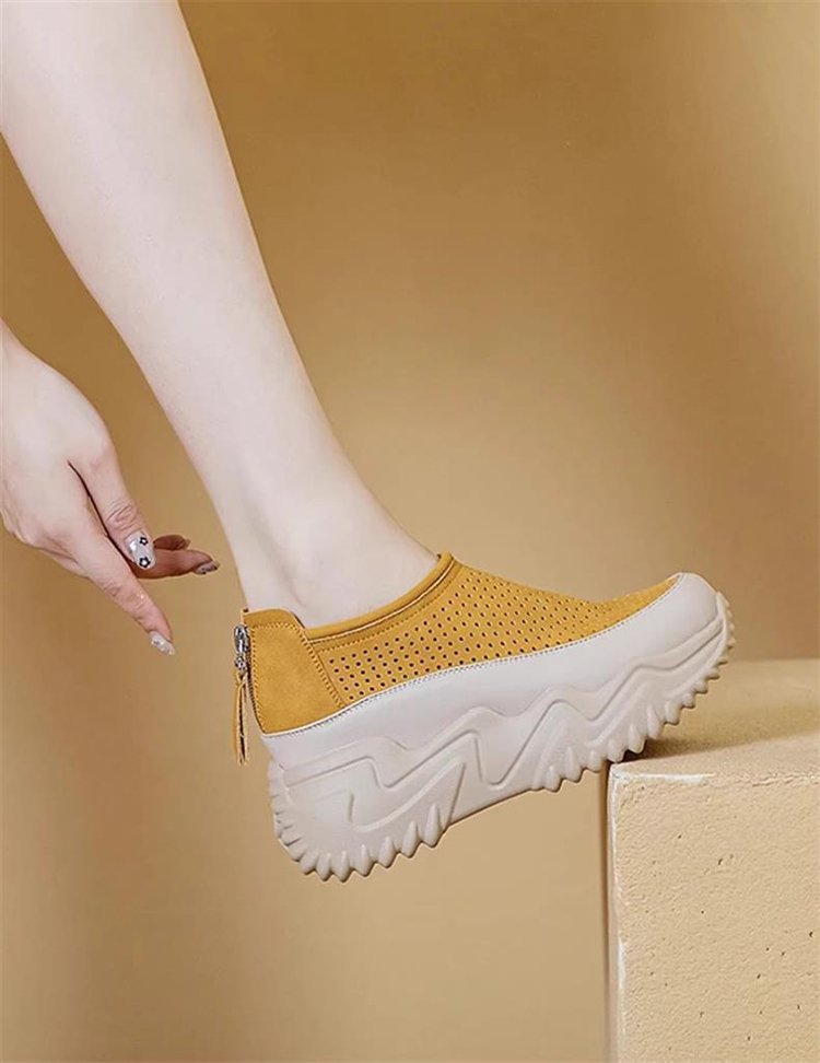 透かし彫りの厚底スリッポンレディース