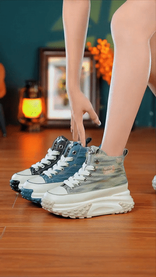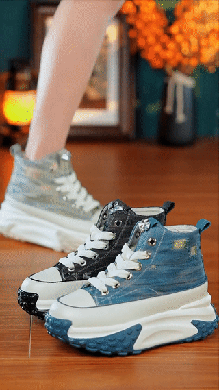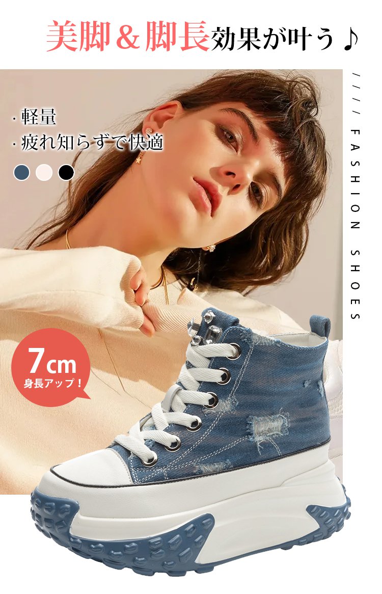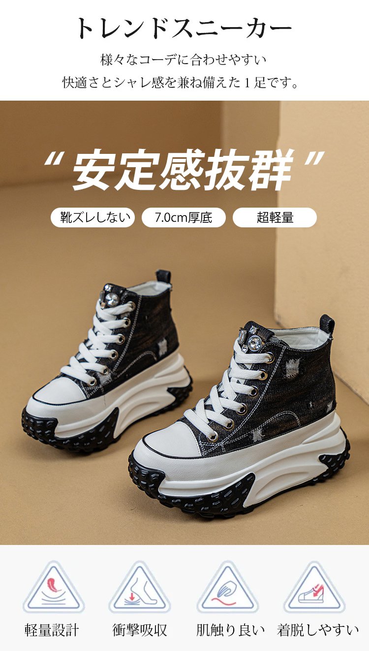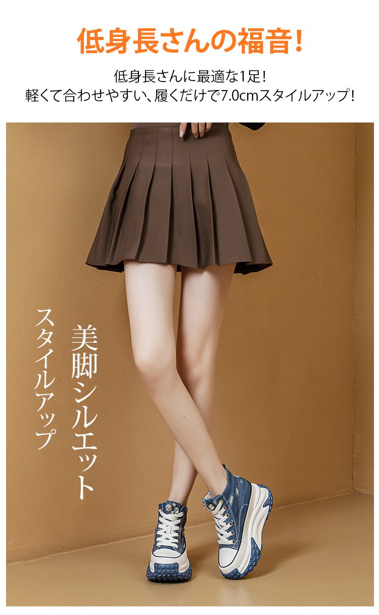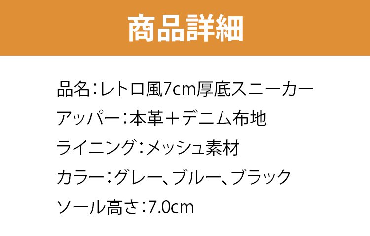 レトロ風7cm厚底スニーカー
